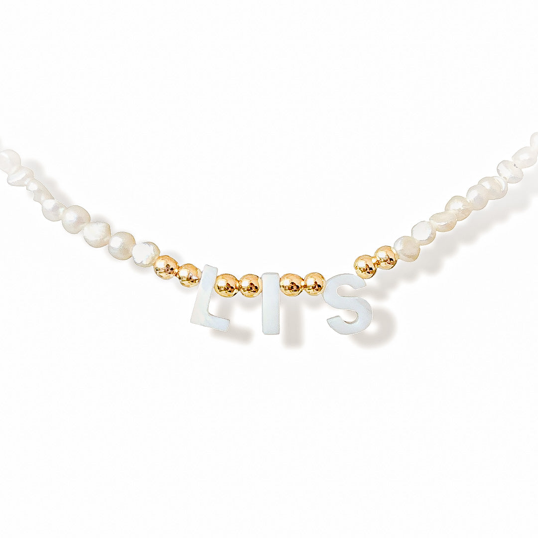 $36.990$36.990/Perlas de rio letras en piedra nácar detalles dorados en oro laminado de 24k collar de 40cm extensión de 5cm Para elegir tu Inicial escribe en...