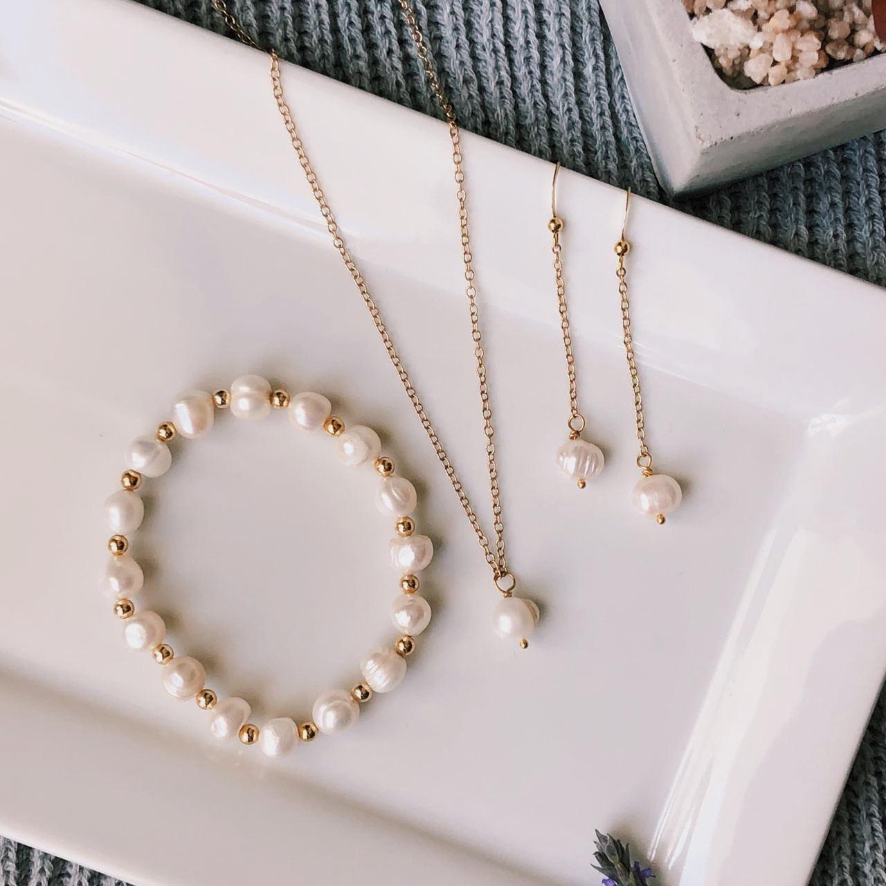 $57.800$57.800/Collar con colgante de Perla de Rio (Laminado 24k) Aros colgantes con Perlas de Rio (laminado 24K) Pulsera de Perlas de Rio con separadores (laminados 24k)...
